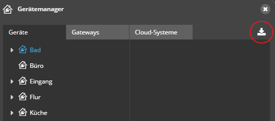 Damit Nutzer vernetzter Geräte Zugang zu den durch ihre Nutzung erzeugten Daten erhalten und um somit für mehr Transparenz und Datensouveränität zu sorgen, bietet der Creator folgende Möglichkeit des Datenexports. Öffnen Sie dazu den Geräte-Manager und nutzen das Download-Icon neben den Tabs. Die Daten werden in unverschlüsselter maschinenlesbarer Form in einer JSON-Datei auf Ihrem Rechner gespeichert.